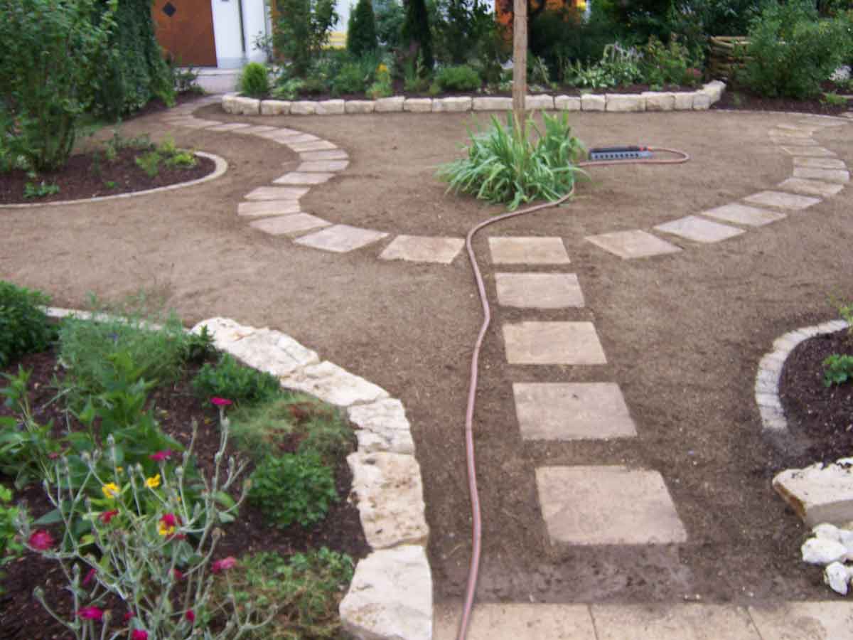 Strukturierung ebener Flächen mit einreihigen Natursteinmauern,