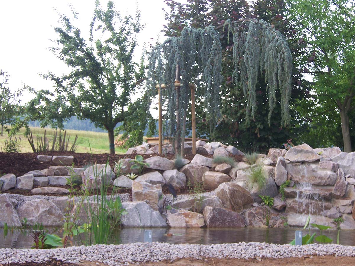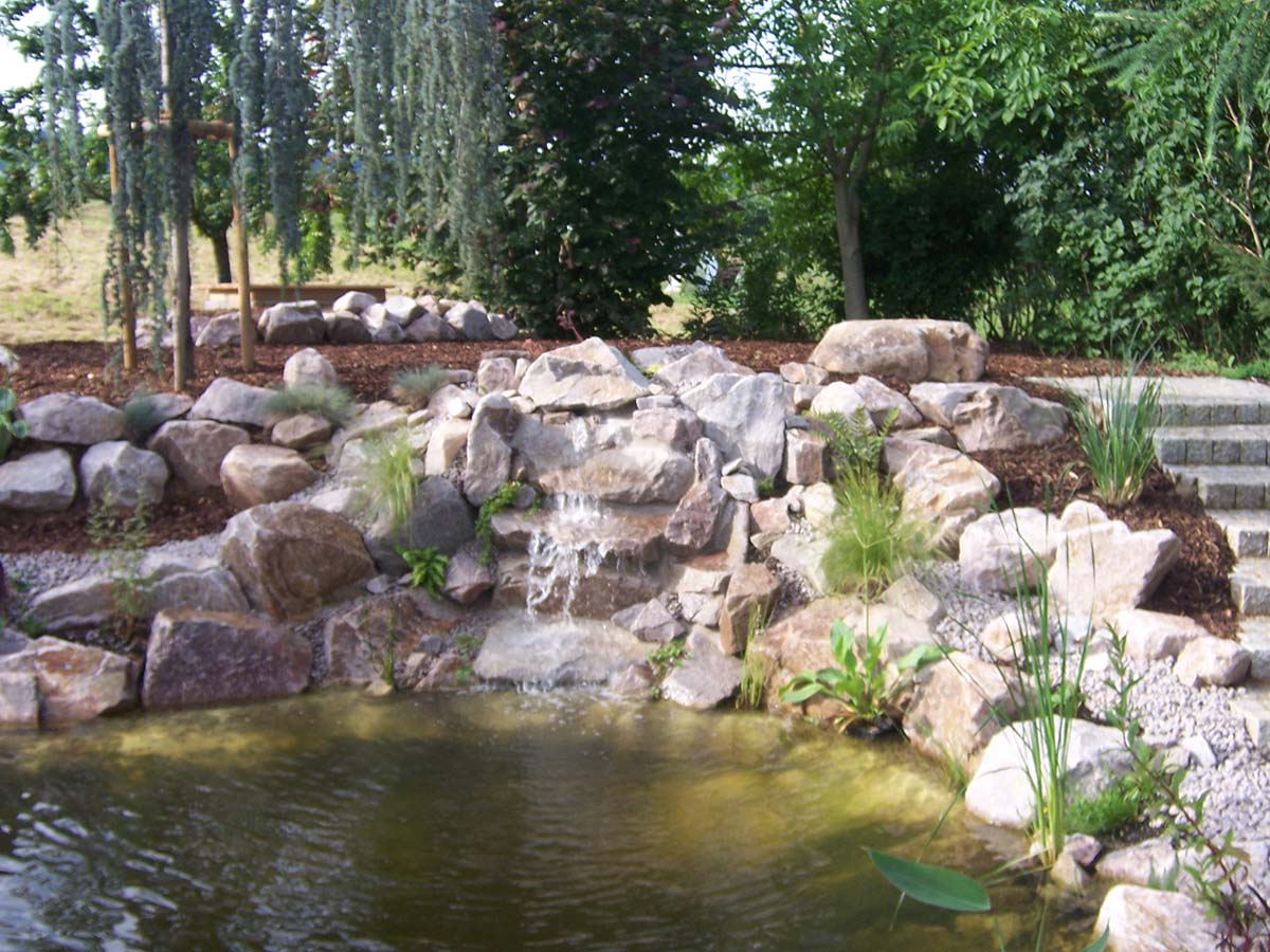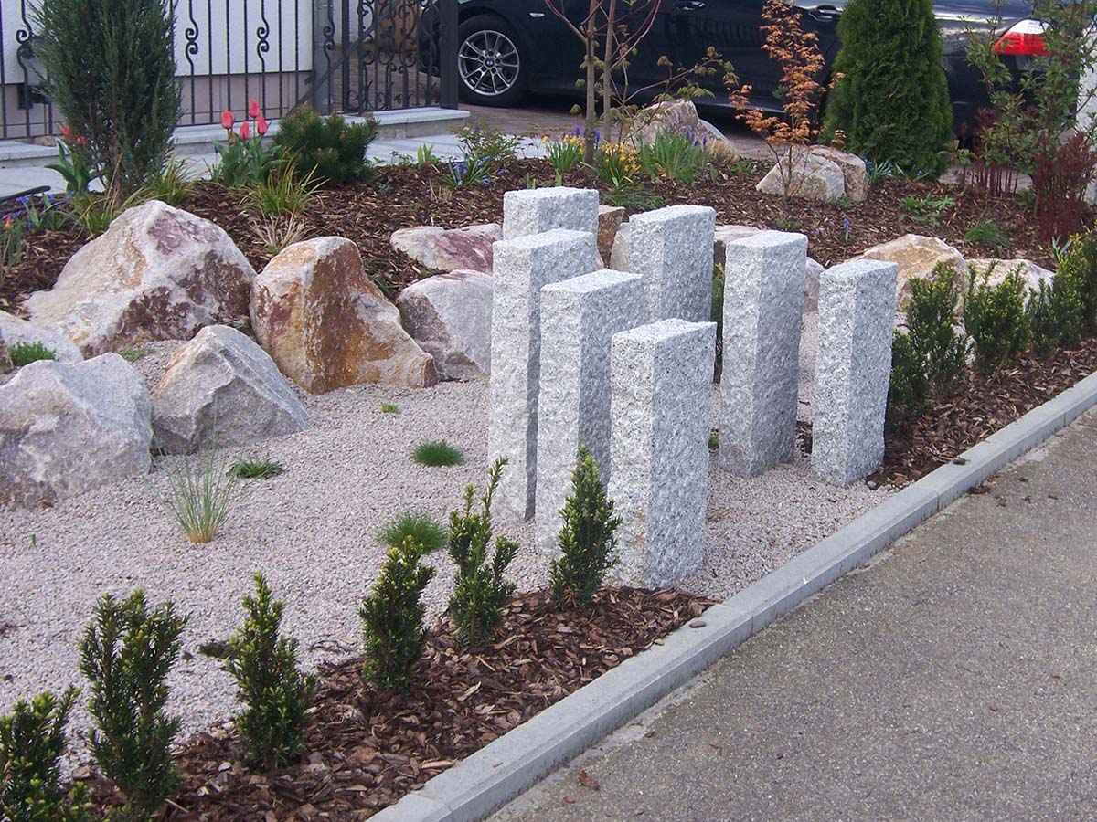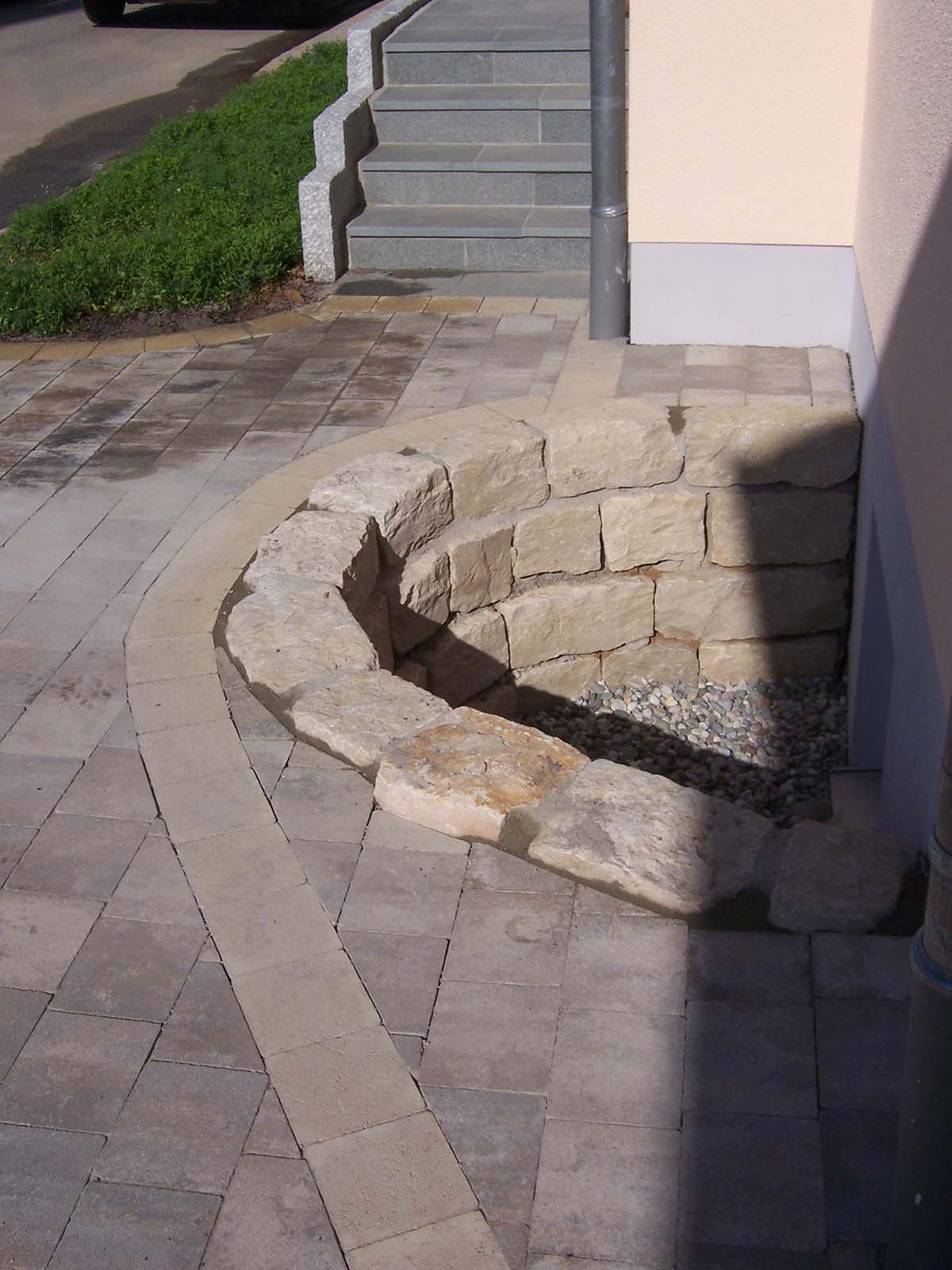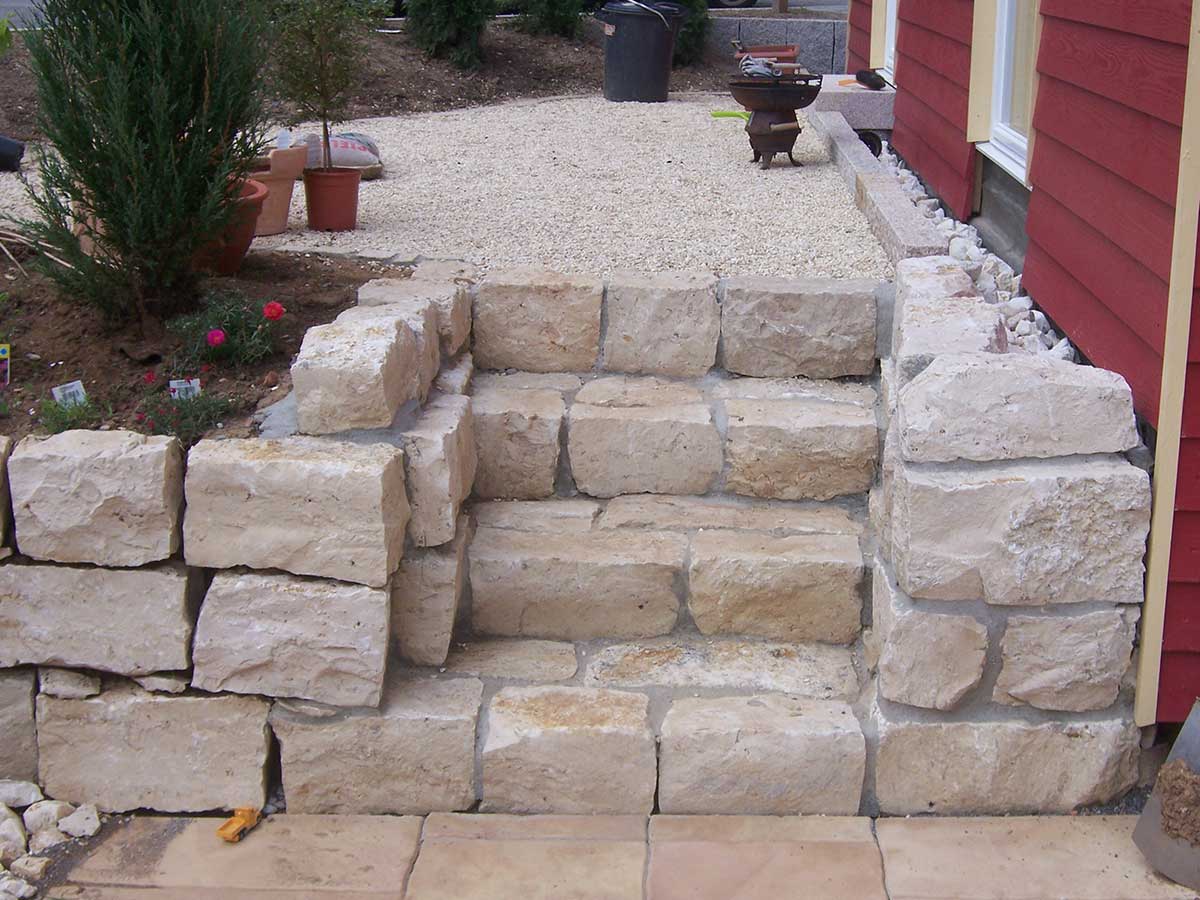Mauern können als Trockenmauer aus Natursteinmauersteinen oder –Felsen erstellt werden und dienen zusätzlich mit den dazu passenden Pflanzen auch noch der Natur. Oder aus natursteinähnlichem Betonstein, mit oder ohne Hinterbetonierung.