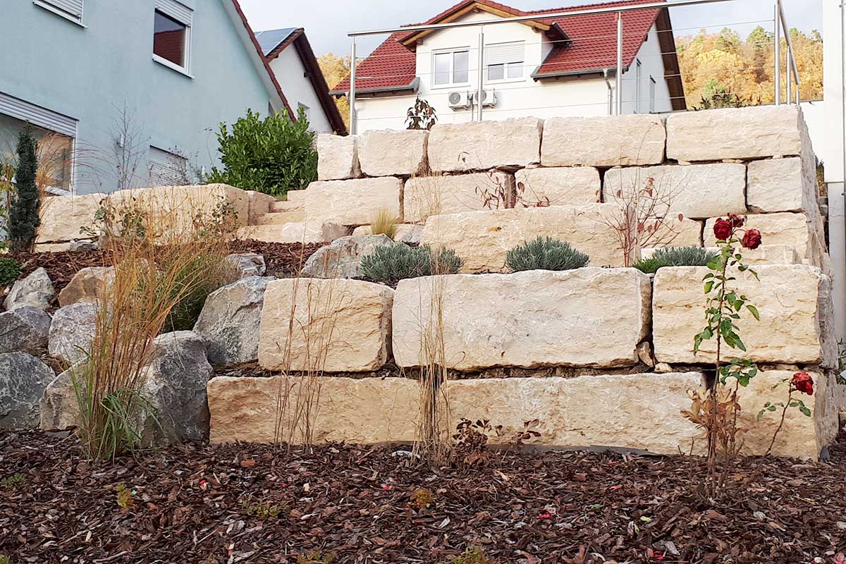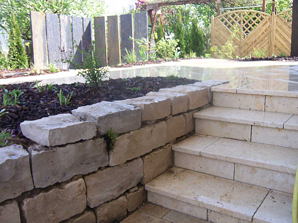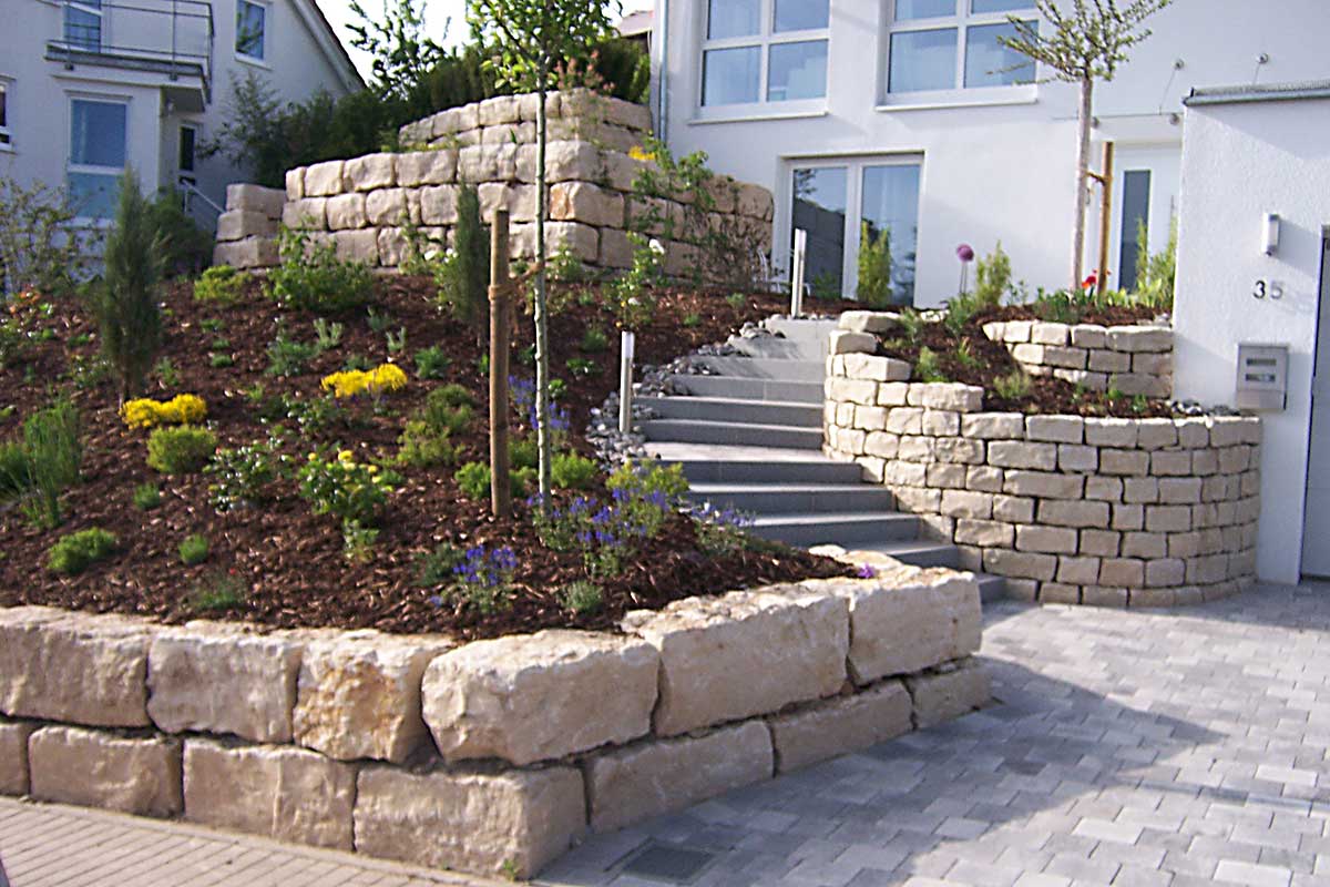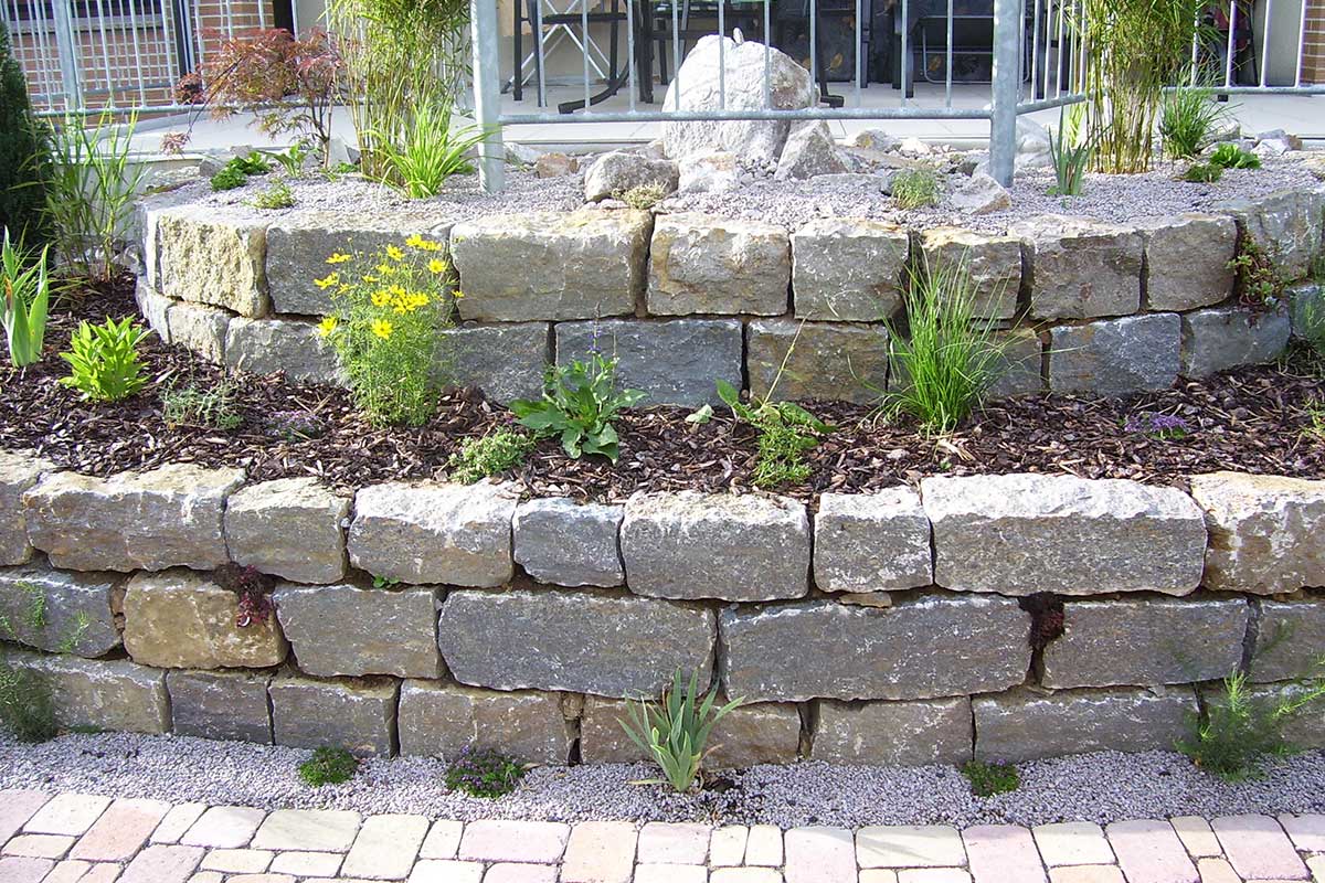 Sie dienen zum einen als notwendige und praktische Hangabstützung und Ausgleich von Höhenunterschieden, dadurch können sie eine neue und größere Gestaltungsfläche schaffen, die den nutzbaren Gartenraum vergrößert.