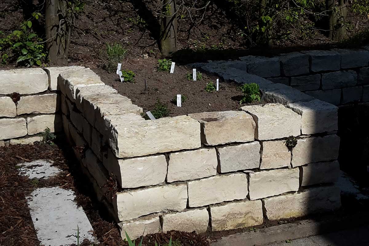 Zum anderen bringen sie als Mauer Struktur in den Garten, schaffen als Trennelemente Räume oder können auch als optische Varianten wie Hochbeete und kleine Beeteinfassungen verwendet werden.